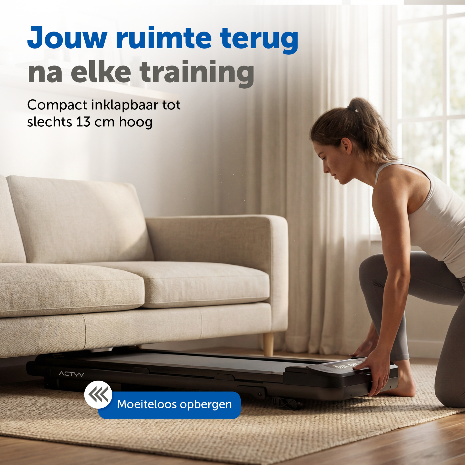We bewegen met z’n allen te weinig. ACTYV maakt het wél makkelijk: compacte loopbanden die je overal kunt gebruiken,